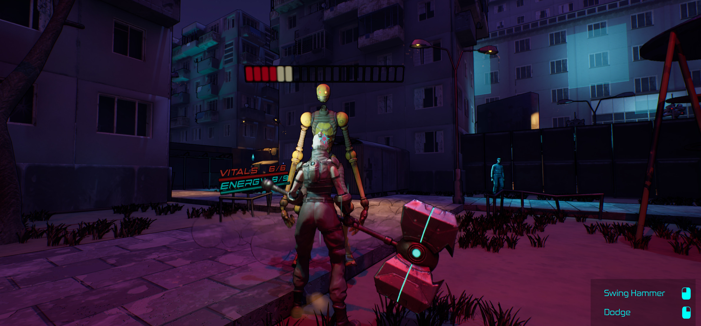 While trying to find your brother, swing your massive hammer to express your emotions and demolish your opponents. Dodge attacks by using magnetism and momentum, which allow you to perform powerful counterattacks.